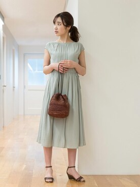 割繊サテンギャザーワンピースを使った人気ファッションコーディネート Wear